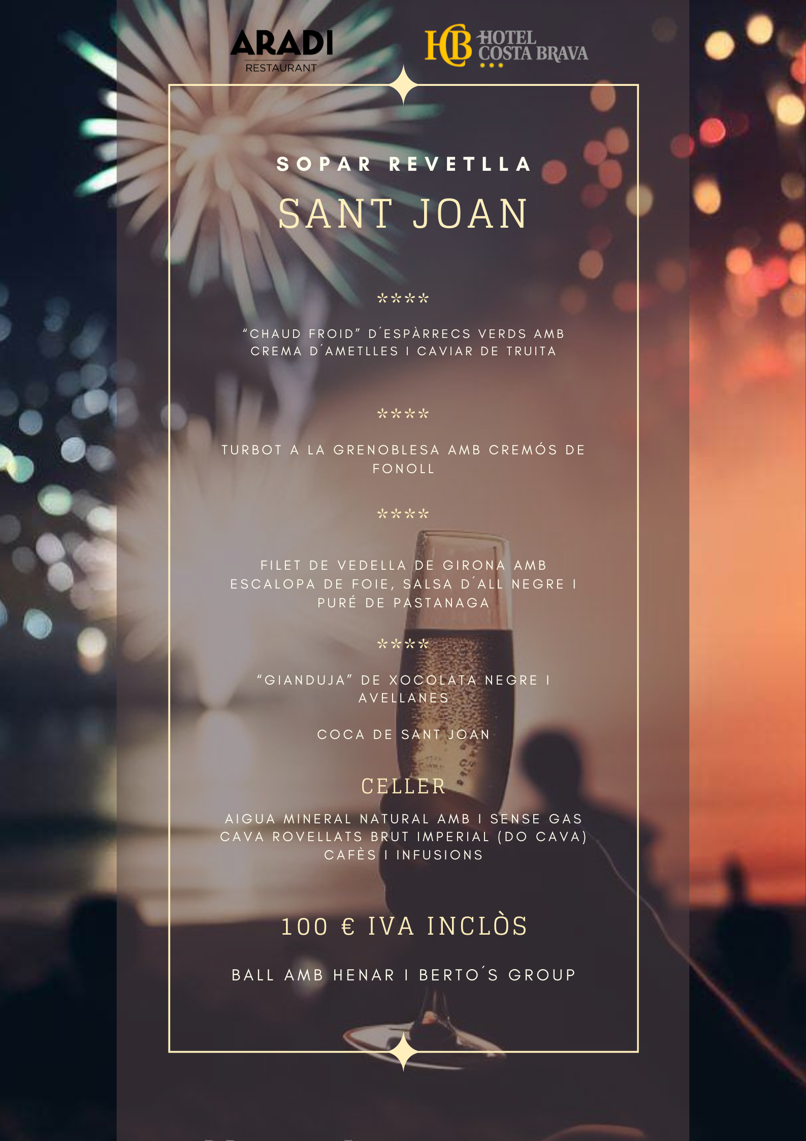T’esperem al Restaurant Aradi per celebrar Sant Joan com toca: amb bon menjar, bona música i amb l´espectacle de focs artificials com a escenari.